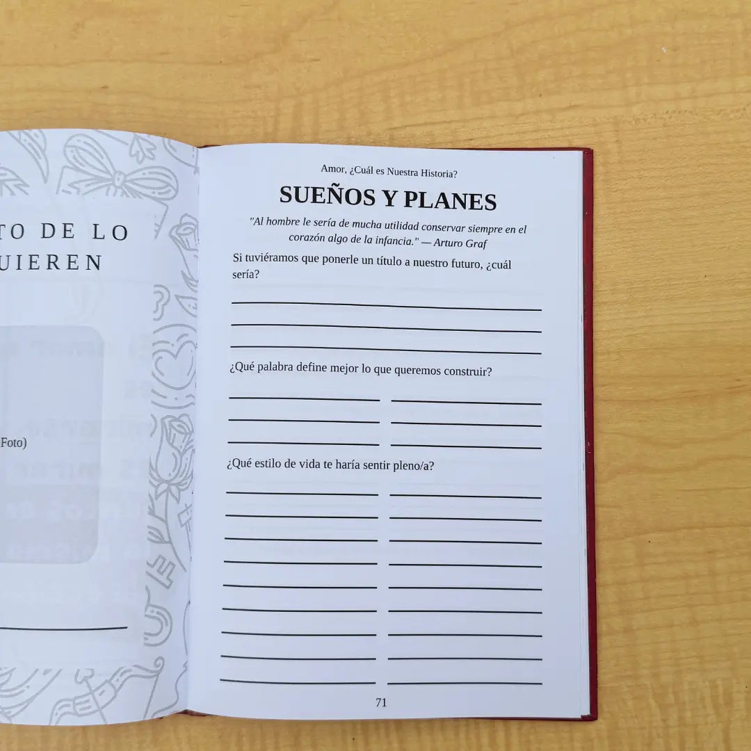 No es un libro cualquiera: es una experiencia en pareja con más de 200 preguntas creadas para conectar de verdad, una edición en tapa dura de gran calidad y extras exclusivos para guardar su historia, sus recuerdos y sus momentos… para volver a ellos una y otra vez.